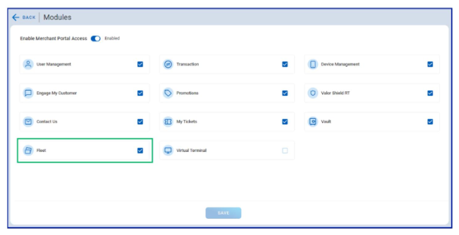 Enable the Fleet option to activate fleet transaction capabilities for that merchant.
