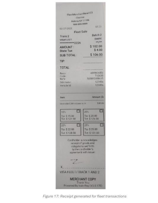 Fleet Card functionality enables payment processing for fleet and fuel-related transactions directly through Valor POS terminals such as VL500 and VL550.