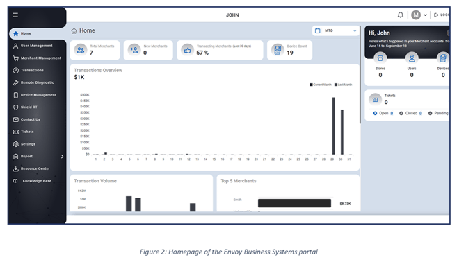 Log in to the Envoy Business Systems Portal using your merchant credentials. Once logged in, the Homepage will appear.