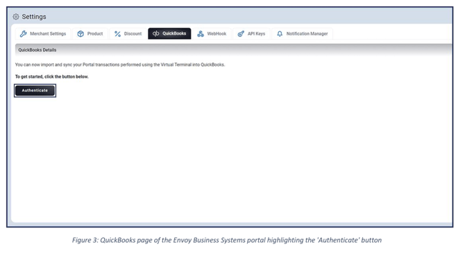 Access to QuickBooks integration is exclusive to ISOs and merchants and is facilitated through the Envoy Business Systems portal.