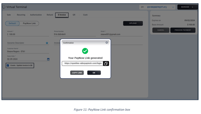 - The PayNow link generated can be used for email template feature available within QuickBooks.
